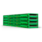 Four folded containers take up as little space as one regular container when stacked. This means you only need one truck or rail wagon to return four empty containers. On vessels, in depots and in terminals we save 75% of space.